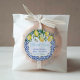 Thank you stickers for any event (shown here for a Baby Shower but all of the text fields are customisable). The design features watercolor lemons against a background of a vintage blue and white azulejo tile design.