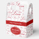 Say "Thank you" in style this Valentine's day with party favours. The word Love has been repeated over and over in red typography to create this elegant Valentine's Day pattern. There is a white plaque on the front with the text, "Thank you from John & Jennifer" and a banner with, "Thank you" with text templates to make it easy to change it to your own words, name, initials or monogram. The tiny, cute little boxes are always a hit! They are perfect for gift cards, candy and other small gifts.