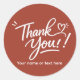 A minimalist hand-lettered “Thank You!” sticker featuring elegant brush-style typography with a playful heart detail. Perfect for packaging, small businesses, and heartfelt touches.