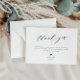 A simple black and white wedding thank you stylish script and a personalised thank you message to your guests.