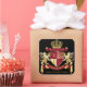 Create your very own aristocratic Coat of Arms, Emblem, Insignia or Family Crest with this beautiful, classic escutcheon or shield design. Crimson red patterns decorate a shield topped with golden crown and flanked by mediaeval heraldic lion or griffin. A matching top banner holds your custom wedding date / birth date / slogan or battle cry. The shield has space for your monogram initials. Bottom banner carries your family name. There is also space below for your favourite quote, motto or message. Replace the sample text with your own for a personalised gift. A gender neutral design that will work for families, groups, couples or individuals. Makes a wonderful gift for Wedding, Anniversary, Birthday, Retirement, Promotion, Father’s Day, Bachelor Party, Wedding Shower, Graduation, International Heraldry Day, Mediaeval or Fantasy-themed parties and other special occasions.
