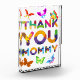 Thank You Mummy decorative text-image against the white background. Six colourful butterflies float around the image or sit on a letter. A customisable photo block to decorate your place and +celebrate Mother's Day, birthday, or any other occasion. You can change butterflies and place some photos instead of them. Please, use the "Personalise" button to change the size of the text-image, to relocate butterflies, or to change the colour of the background. Have fun, customise and buy one, and be happy!