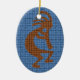 This unique music teacher Christmas ornament features a traditional Native American Kokopelli with flute. The brown Kokopelli stands out against a blue background both of which display a mosaic or tiled pattern. The Kokopelli is a Native American folk design and typically a favourite among music lovers and music teachers. The back of the holiday ornament features a pale blue background along with "Thank you for being my music teacher" and your teachers name. All text can quickly and easily be personalised.