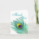 Lovely turquoise peacock feather with "Thank You" in graceful turquoise script