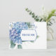 This Thank You Note Card is shown in white with a pretty blue hydrangea floral bouquet watercolor print.