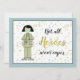 Thank a nurse with this cutely designed card of a female nurse in scrubs and wearing a face mask on a pale starry background. Over laid with text that reads "Not all heroes wear capes." Editable text on back or delete for a heartfelt handwritten note of you own. Created in part with graphics by Alice Smith from digiwebstudio.com