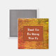 Give your house guests a special keepsake or leave a message on your refrigerator with an inexpensive magnet featuring beautiful autumn colours of orange, yellow, and brown. The background displays thin horizontal lines in fall colours that resemble straw or dried grass. A large rectangle in the centre in rusty orange provides the solid background for "Thank You For Staying With Us" which can easily be customised if you desire.