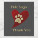 Say thank you to your dog walker, pet sitter, or veterinarian with this wine bottle label. This simple to use label features a gold glittery paw print in the centre of a bright red heart. The heart features an elegant curve and a painted red texture. Personalise "Fido says thank you" quickly and easily.