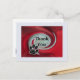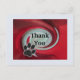 Express your appreciation to your dog or pet sitter with this inexpensive thank you postcard. The background features a large swirl of pale green and white colour against a swirled bright red background. A large black paw print appears in the lower corner of the design. The words "thank you" appear in the centre and can easily be customised to suit your needs. The solid pale green boarder colour may be customised. The text on the back is also easy and quick to personalise.