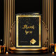 A thank you card for a graduate. A chic black background colour and a faux gold frame. With a golden confetti rain. On front a hand lettered style script and the text: Thank You! Graduate
