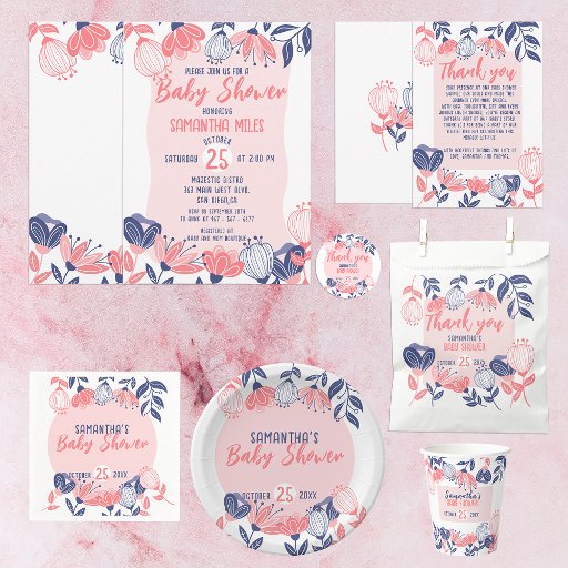 Cute Blue and Pink Flowers Botanical Baby ShowerDesigned by Kristina Lj Petrovska
