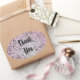 This beautiful multi-coloured pink mosaic pattern provides the background for the words, "thank you". This tiled pattern creates almost a stained glass effect as the background and allows your words of appreciation to shine through. This sticker is a perfect general thank you product for teacher, business, weddings, or personal use.
