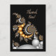 Elegant design for Thank You greetings. Silver, gold, and white beads with intricate detail spiral on a black background. Beveled silver and gold letters spell out "Thank You".