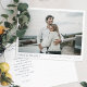 This simple, stylish modern photo wedding thank you postcard template features your names and date beneath your photo along with 'LOVE & THANKS'. The text on both sides is an elegant shade of dark blue by default. You might choose to change the font, punctuation or colour used for various text elements of this design on the front and/or back. For example, you might choose to change the colour of some or all of the text. Or you might want to replace the LOVE AND THANKS text with another message of gratitude. We've made the background on both sides transparent by default, to let the colour of the paper simply serve as the base tone. You can easily change this by either picking one of the basic colours in the editing tools, entering another colour number in place of ours if you have a specific hue in mind that you found in your research, or by looking at the colour spectrum tool and choosing something by sight. The lines for the addressee's address on the back are a light grey, but you can change this to a different colour or delete the lines for an even simpler look. We've put some sample text on the back for you to replace with your own message as you see fit, but please don't feel restricted by this. If you prefer delete our sample text entirely and keep that part of the postcard totally blank so that you can write a handwritten note on the back of each postcard instead, you can do that. Or you might want to replace our text with your own message of gratitude and your own closing and then hand sign your names when you receive the cards. In any case, please do remember to remove all of the sample/placeholder text on both sides, including the sample return address on the back as well as the front sample details and photo! We've chosen matte rather than semi-gloss as the default paper choice, as it is well suited to writing your own message on and won't smudge. You can of course change this to semi-gloss if you prefer. Make this stylish modern wedding thank you postcard uniquely yours with the intuitive design tools, your favourite photo and your inspiration!