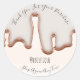 An elegant small wedding business favour sticker in rose gold blush tonality.