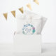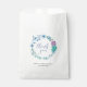 Say thank you to your guests at your wedding with these elegant blue and purple watercolor personalized favor paper bags filled with treats.