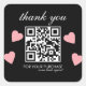 Thank You QR Code Script Pink Floating Hearts Square Sticker
