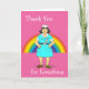 Cartoon image of a nurse standing in front of a rainbow with a pink background. Easily personalise this card by editing the template text. Message currently reads 'Thank You ... For Everything' on the front and inside reads 'Thank You So Much'. You can also change the background colour of the card if desired. Thank you for viewing my cartoon designs.