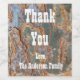These appreciation wine bottle labels feature a rustic tree bark photo that captures green and brown bark with curved lines. This beautiful tree trunk pattern provides a gender-neutral earth tone background for "Thank You" and your family's name which appears in the centre in white font.