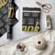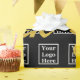 Large display text reads 'Thank You' in faux gold script. (If desired, you can edit the text to show a custom message.) Replace the display logo file with your company's logo. Your logo will appear in a pattern on black wrapping paper.