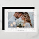 A timeless, classic, and elegant wedding photo thank you card with a modern minimal aesthetic in classic white & black with real foil accents. Simple elegant real foil monogram crest with simple typography arranged in a modern layout. Custom photo, the couple's monogram, and the personalised message on the back. **All colours can be changed to suit your wedding colour preference. Check out our other matching wedding items for this collection.