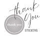 A simple minimalistic thank you in white elegant typography on a silver/grey background.