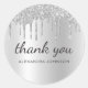 Thank You Silver Dripping Glitter Classic Round Sticker