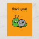 Cute snail thank you card, the background colour & the text "Thank you!" are customisable.