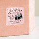 The perfect little sticker to place on your products and help promote your business. Our design features a fun black and white vintage camera. "Thank you for your order" combines a modern handwritten style font and a san serif font. "Snap, Tag & Share" is written in a fun script font. Add your social handle, so your customers can snap, tag, and share you on social media. Camera artwork designed by Moodthology Papery.