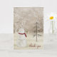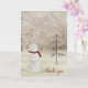 Snowman with a Christmas gold star decoration for old pine tree in winter woods.