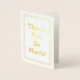 This clean gold foil thank-you greeting card design features the message "Thank You So Much!" on the front, along with a personalised message on the inside. It could be used to show gratitude to somebody who has done a special deed.