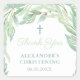 Thank you stickers for any event but particularly suitable for a Baptism / Christening. The design features a frame of watercolor spring leaves in harmonious shades of green. If you want to move or delete the Cross then this can be easily achieved upon entering the design tool (underneath the text customisation boxes, click to "personalise further".
