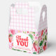 This thank you berry first birthday design for a twins joint birthday party features a pattern of watercolor strawberries and florals on the bottom and a pink plaid design above. There is a white arch front and back with a thank you message. You can customise the message and names in this design. See the whole matching collection.