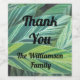 Add a tropical treat to your words of appreciation with these wine bottle labels featuring large striped green leaves. This beautiful foliage common in the tropics overlaps creating layers of green and yellow leaves. The stripes seen on the leaves create an abstract geometric pattern in lovely shades of green. "Thank You" and your family's name appears centred in black font and can easily be personalised.