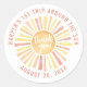 "First Trip Around The Sun" is displayed at the top, with the birthday date at the bottom for a personalised touch. These classic colours make it a gender-neutral design, perfect for celebrating a birthday boy or girl. Fully customisable and great for sealing thank-you gifts or party favours!