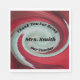 Are you planning an appreciation breakfast or luncheon for your teacher? Perhaps you are a member of your school's PTSO and offer appreciation meals for the entire school. These napkins feature a bright red background with a pale green and white swirl in the centre. The entire design has a tiled or mosaic appearance. "Thank you for being our teacher" as well as your teacher's name can quickly and easily be personalised to suit your mealtime needs. Customise the teacher's name with the name of your school and customise our teacher to a teacher and you have created a memorable appreciation napkin for the entire school.