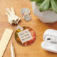 The background of this inexpensive teacher appreciation keychain features a swirled, yellow and orange, bright abstract pattern that is elegant and eye-catching. A solid light orange square is centred on this round keychain and provides the background for your words of appreciation. "Thank You For Being My Teacher" can easily be customised to suit your needs.