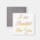 The image prominently displays the phrase "I am Thankful For You" centred on a plain, light white background. The text is arranged in a simple and balanced way, with each line centred and of similar length. This straightforward composition emphasizes the warm message of gratitude.