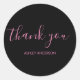Thank You Typography Plain Black Pink Classic Round Sticker