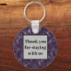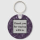 House and vacation rentals are becoming more and more popular. Set your rental apart with this inexpensive and elegant keychain. The background features a subtle pattern of beautiful purple colours. "Thank you for staying with us" appears in a solid light purple square and can easily and quickly be customised to suit your needs.
