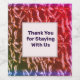 Say thank you to your vacation rental guests with this bright pink and purple wine bottle label. The centre is vivid pink with purple highlights towards the bottom with a crinkled abstract pattern that resembles wrinkled foil or liquid metal that has folded and wrinkled as it cooled. Quickly and easily customise the words "thank you for staying with us" which appear in the centre of this sophisticated bottle label against a light pink rectangle.