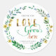Thank you Watercolor Floral Wreath Classic Round Sticker