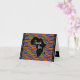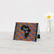 Colourful Kente Thank You Card that matches wedding invitation with the same African Kente and mud cloth pattern. Black Africa with Thank You in white lettering on the cover. This detailed kente pattern has rich colours of yellow-gold, red, black, purple and blue.