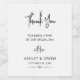 Personalise these modern elegant black and white, thank you wedding wine labels with your names and personal message to your wedding guests. These custom wine bottle labels feature a trendy black script typography on a traditional white background with the names of the bride and groom, your wedding date and thank you message. Simply edit these wine labels in the personalise section to create your own customised wedding thank you labels.