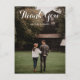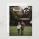 Modern Thank You card featuring white whimsical script and your wedding photo. Also add your thank you message and photo on the back. Perfect for rustic and modern weddings.