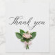 A beautifully handwritten "Thank You" in bold, flowing cursive script occupies the centre of the image. Below the text, a delicate arrangement of elegant flowers in soft pastel hues frames the message, creating a visually appealing and heartfelt composition.