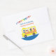Thank you stickers for birthday parties which has a illustration of a yellow school bus with happy and smiling kids on their way to the fun birthday party in town! Perfect for birthday kids who love transportation vehicles especially buses! Rainbow bunting flags decorates the background. Personalise easily with your thank you message.