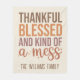 Welcome the cosy charm of fall to your home with our fun throw blanket featuring the saying thakful, blessed, and kind of a mess! Text based design in a fall colour palette perfectly captures the essence of autumn, making it an ideal addition to your home for the fall, Halloween, and Thanksgiving seasons.