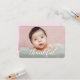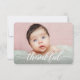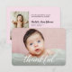 Personalised baby announcement card with an elegant and modern script white "thankful" text. Replace the photo, pink background colour and details to customise for your special baby birth introduction. Use this to thank everyone from your baby shower once your baby girl arrives.