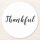 Thankful black and white script calligraphy cute thanksgiving holiday party Paper Coasters.